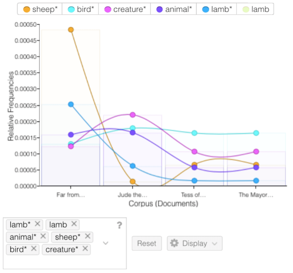 As we went deeper into our research with Voyant Tools, our questions had changed to become more precise. What is the reason for Thomas Hardy’s negative perception on time, and what is the relation of this perception with his main themes? In what ways was the portrayal of males and females, and his views on conventions and society, shown in Hardy’s books? How did Thomas Hardy illustrate animals in his works, and specifically birds and sheep?