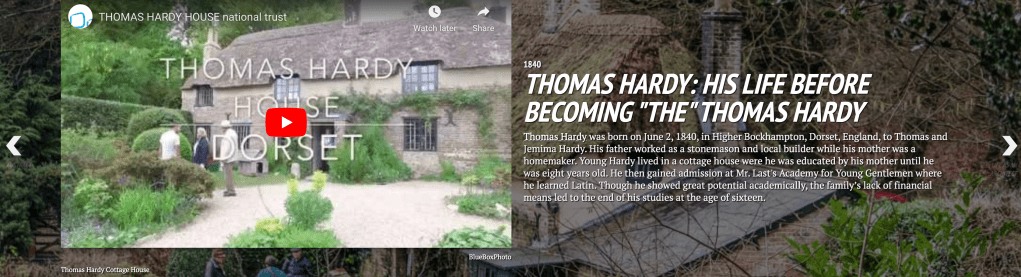 We were able to achieve our main goals: The disparity between men and women in his novels? Why does Hardy affiliate humans with creatures in his works? How did Thomas Hardy’s personal life affect his style, ideas, and creativity throughout his books? How Thomas Hardy criticized the social class in his novels? These goals were achieved, thanks to TimelineJS and the other DH tools. The DH tools that were introduced to us, such as Google MyMaps, Topotext, Voyant Tools and CLiC, truly allowed us to dig deep into the background of Hardy’s novels, and discover things that were unknown at first glance. We thoroughly analyzed the relevance of word frequencies, the positive or negative connotations associated with them, along with geographical locations, and Hardy’s background that influenced his life and writing. The aforementioned DH tools provided us with the necessary information to create an illustration of Hardy’s life in the form of a timeline using TimelineJS. We were able to embed maps and include pictures, gifs, figures, videos, soundtracks, and screenshots in our timeline in order to create a constructive demonstration of the events that occurred in his life and works. Additionally, the backgrounds had to be chosen at a certain length and height in order to coincide the main multimedia, and the corresponding text. Nevertheless, due to the great features that TimelineJS offers, we were able to showcase all the work we have done for this project in a very organized, concise, and appealing way. The idea of a chronological project truly allows the reader to walk through Hardy’s life like a story, gaining a deeper understanding behind his work and personality.